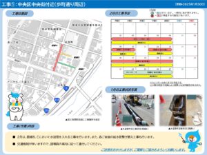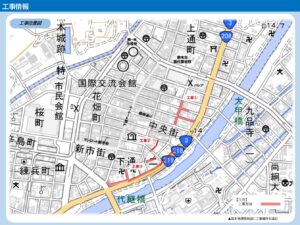 まちなかでは、現在下図の場所で工事を行っています。