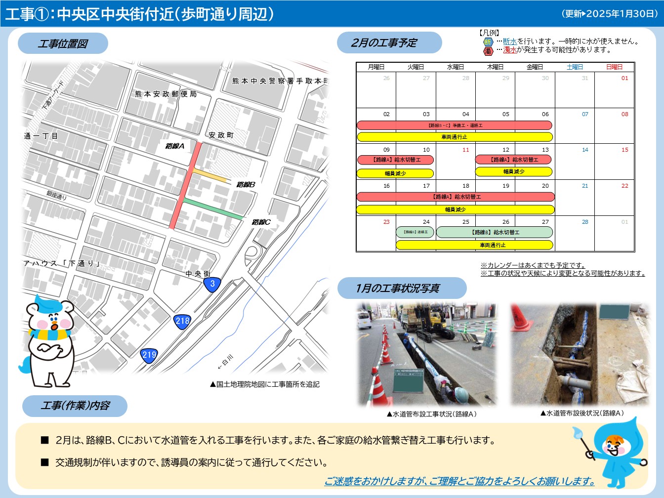 工事時間帯 ①7:00~15:00(路線A)