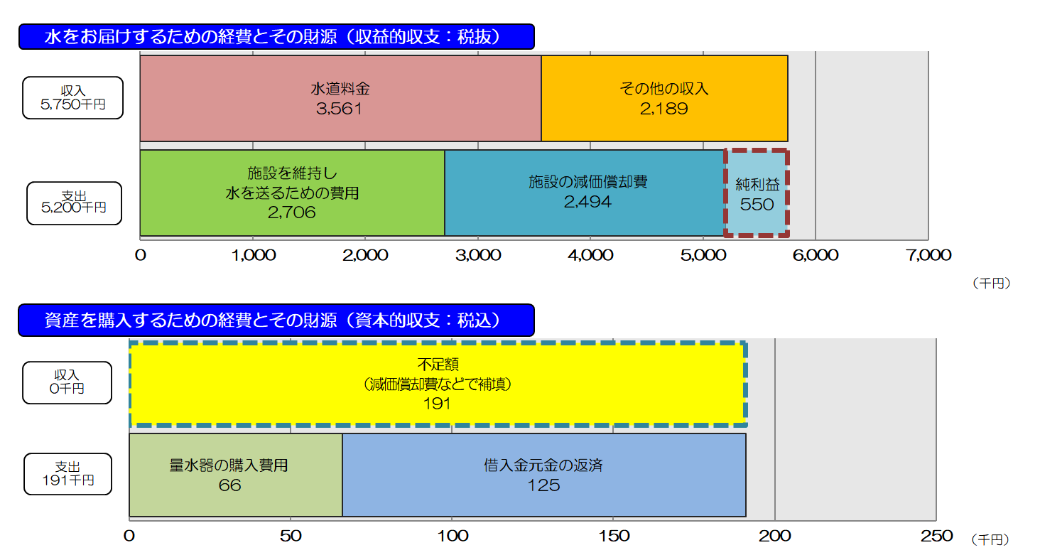 一方、資本的収支は、資本的収入はなく、資本的支出の19万1千円に対して不足する額については、当年度分消費税及び地方消費税資本的収支調整額6千円、過年度分損益勘定留保資金18万5千円で補填しました。