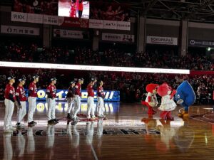 また、ハーフタイムには上下水道局からウォッタくんも登場し、火の国サラマンダーズの選手の皆様とともにPRを行いました!